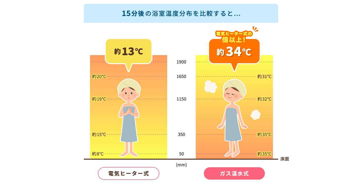 ※外気温15℃湿度60%ユニットバス1坪タイプにての測定値です。